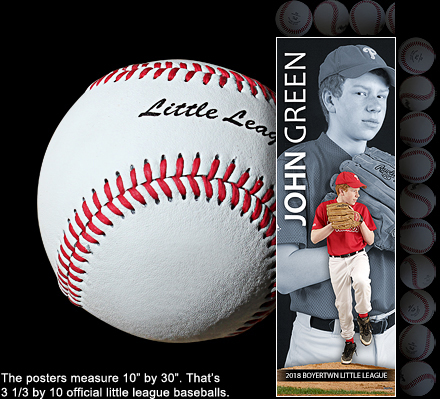 It's Time for a Change Along with the standard prints, we have created two unique styles of posters. The first is the 30" by 10" team poster with all of the players lined up in front of the club name. The second is the 30" by 10" individual poster with both an action shot and a posed shot, along with the name of the player and the organization. They are printed on premium luster photo paper. And when your young athletes see themselves this big, they feel like superstars.